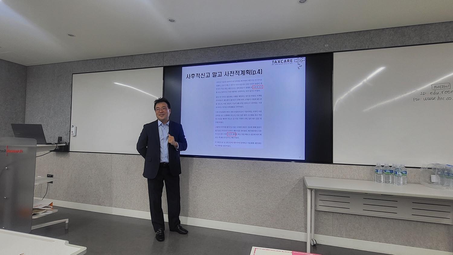 On June 19, the monthly Horse Seminar was held in the training room on the 4th floor of the Korea Research headquarters. The session featured a special lecture by Kim So-cheol, CEO of Tax Care and widely recognized as “Korea’s National Tax Accountant.”