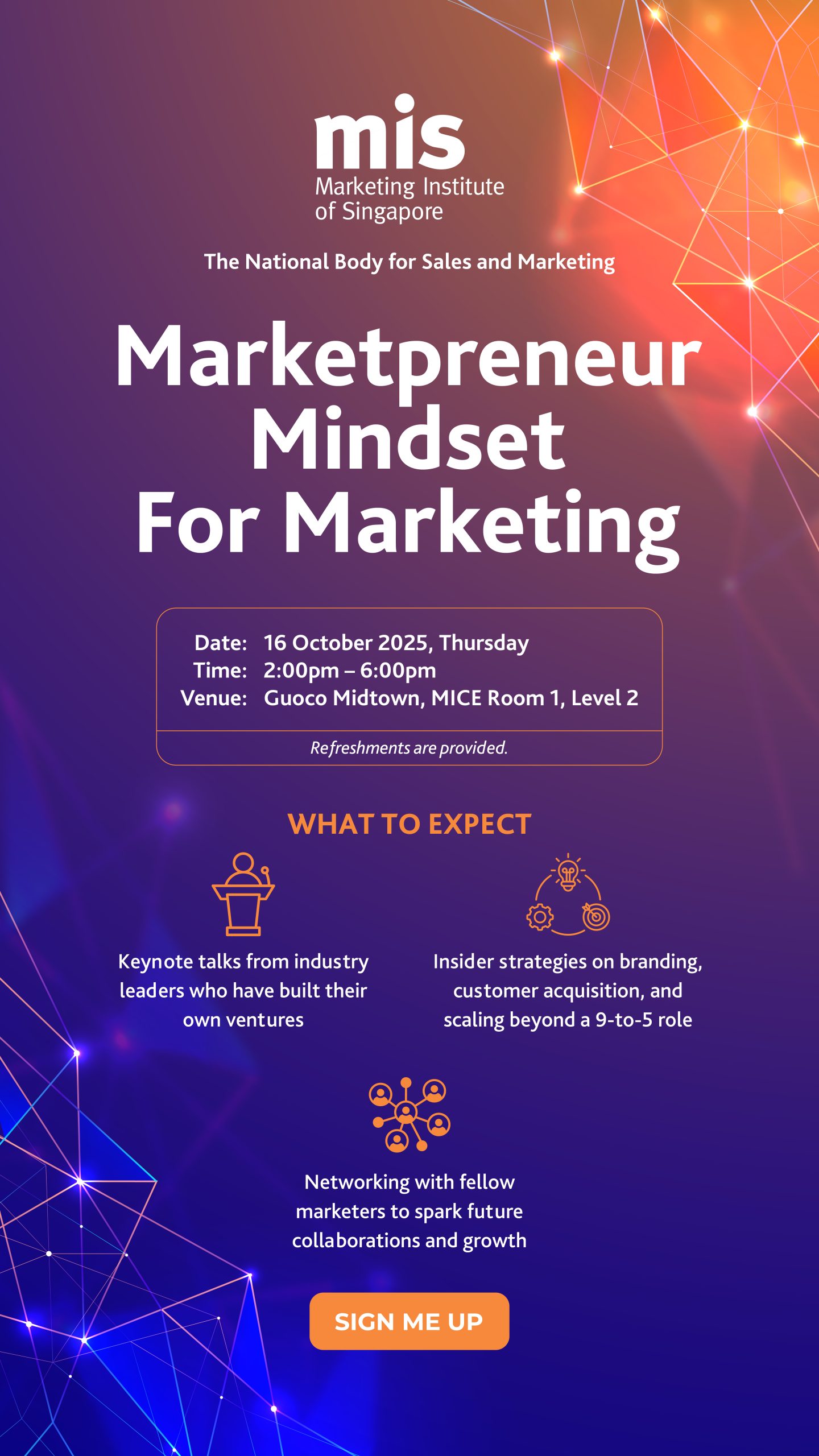 Founded in 1973, the Marketing Institute of Singapore (MIS), a not-for-profit organisation, is the National Body for Sales and Marketing. Over the years, MIS has nurtured more than 50,000 sales and marketing practitioners through its professional learning and development programmes and provided ample networking opportunities for thousands of members through its diverse series of events.